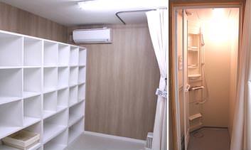 女子更衣室にはメイク台と姿見もあります。もちろんシャワーも完備。